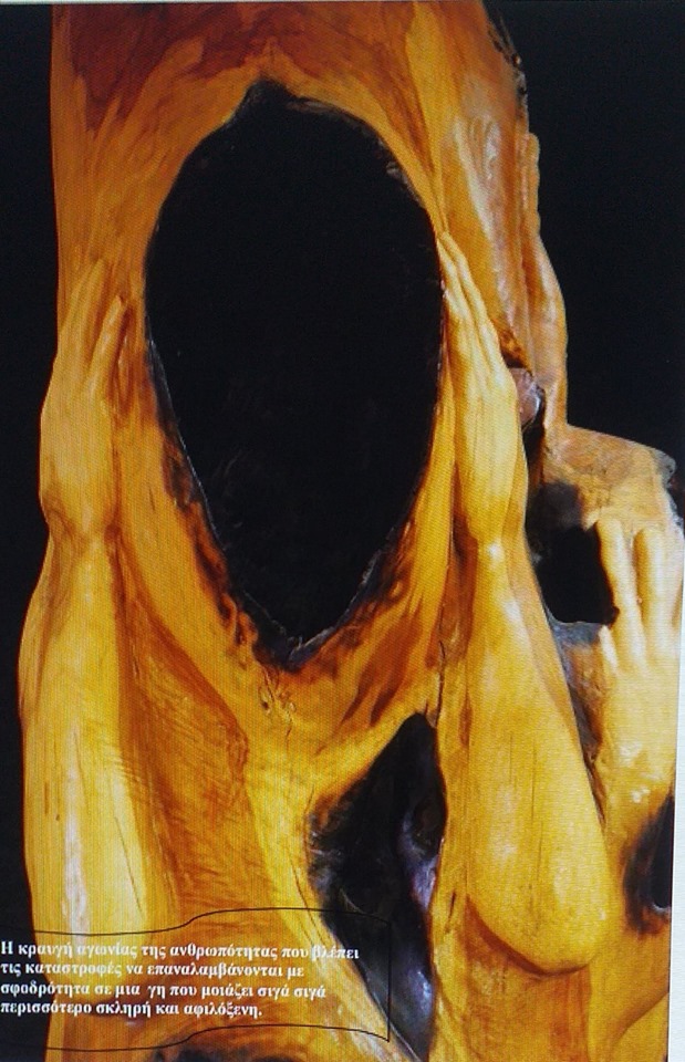 Στην τελευταία αυτή έκδοση το εξώφυλλο και το οπισθόφυλλο τα κοσμούν α δύο θαυμάσια ξυλόγλυπτα του Σπύρου Ντασιώτη από το μεγάλο έργο του «Πάρκο των Ψυχών», που βρίσκεται στην Πάρνηθα, θυμίζοντας την πύρινη καταστροφή που σάρωσε μεγάλο μέρος του δασικού της πλούτου και από τον κύκλο έργων του με τίτλο «Κρίση - Καταστροφή»